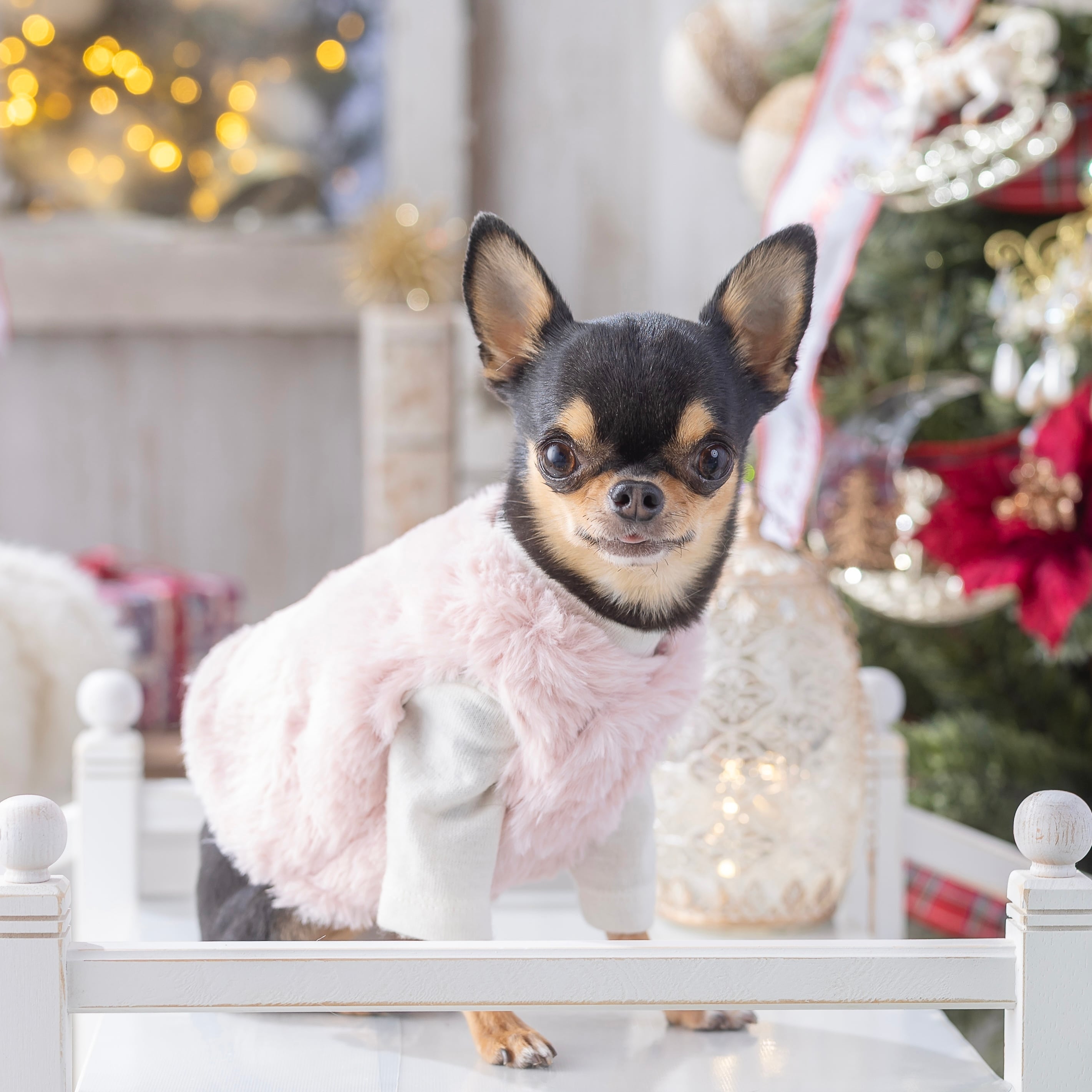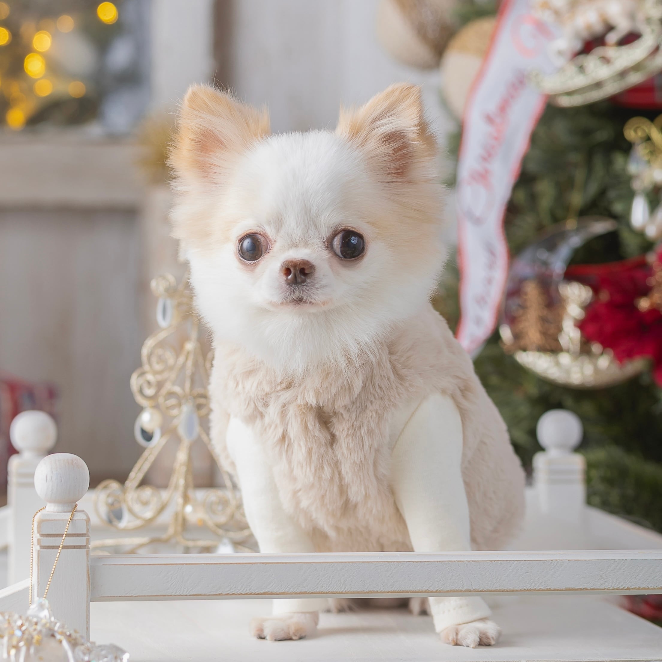 軽くて肌触りの良い上質なフェイクファーを使用、ふんわりと優しい着心地は、愛犬ちゃんの寒い季節のコーディネートに暖かさと華やかさをプラスしてくれます。