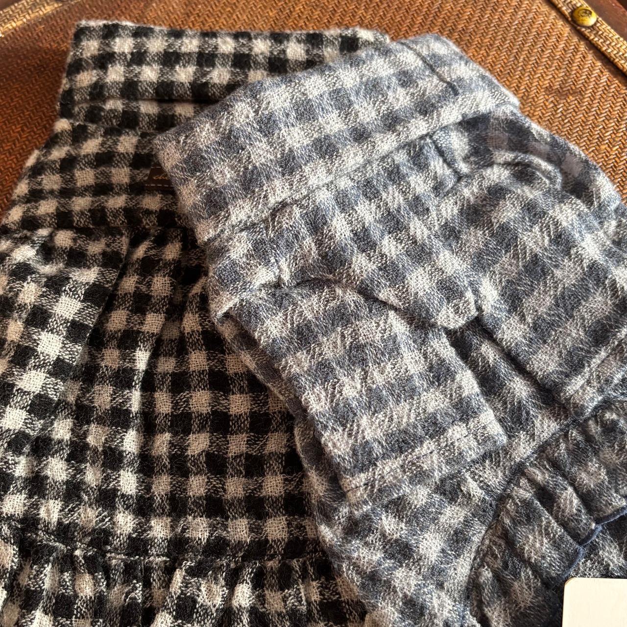**Rendezvous アトリエgg ワンピース** おしゃれなギンガムチェックのデザインで、愛犬の日常に華やかさをプラスする薄手のニットワンピースです。首元のタートルネックが愛犬の可愛さを引き立て、着心地も抜群。シンプルながらもスタイリッシュなスタイルは、様々なシーンで活躍します。