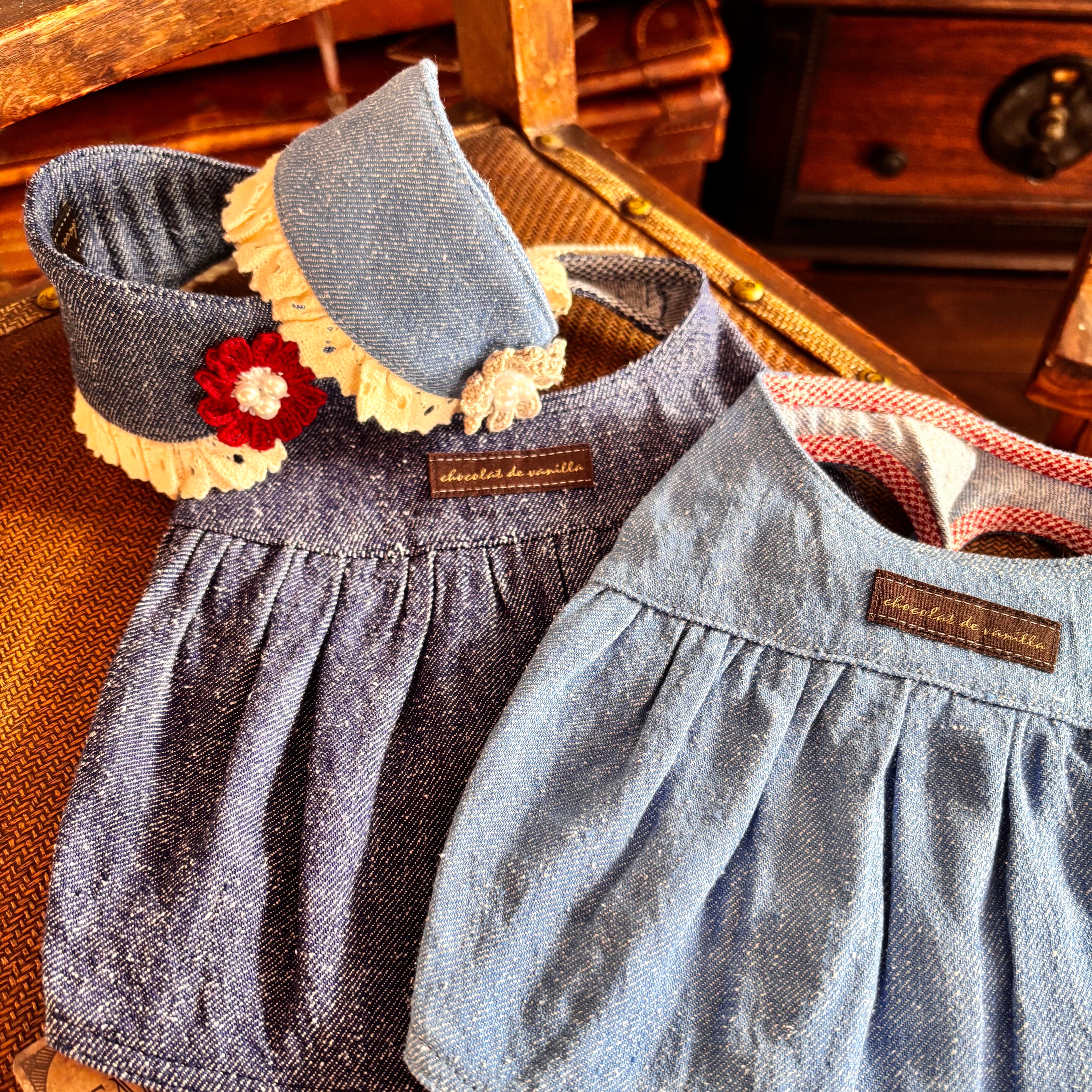 アトリエgg 犬服 ボンネット付きの可愛いデニムのエプロンワンピース