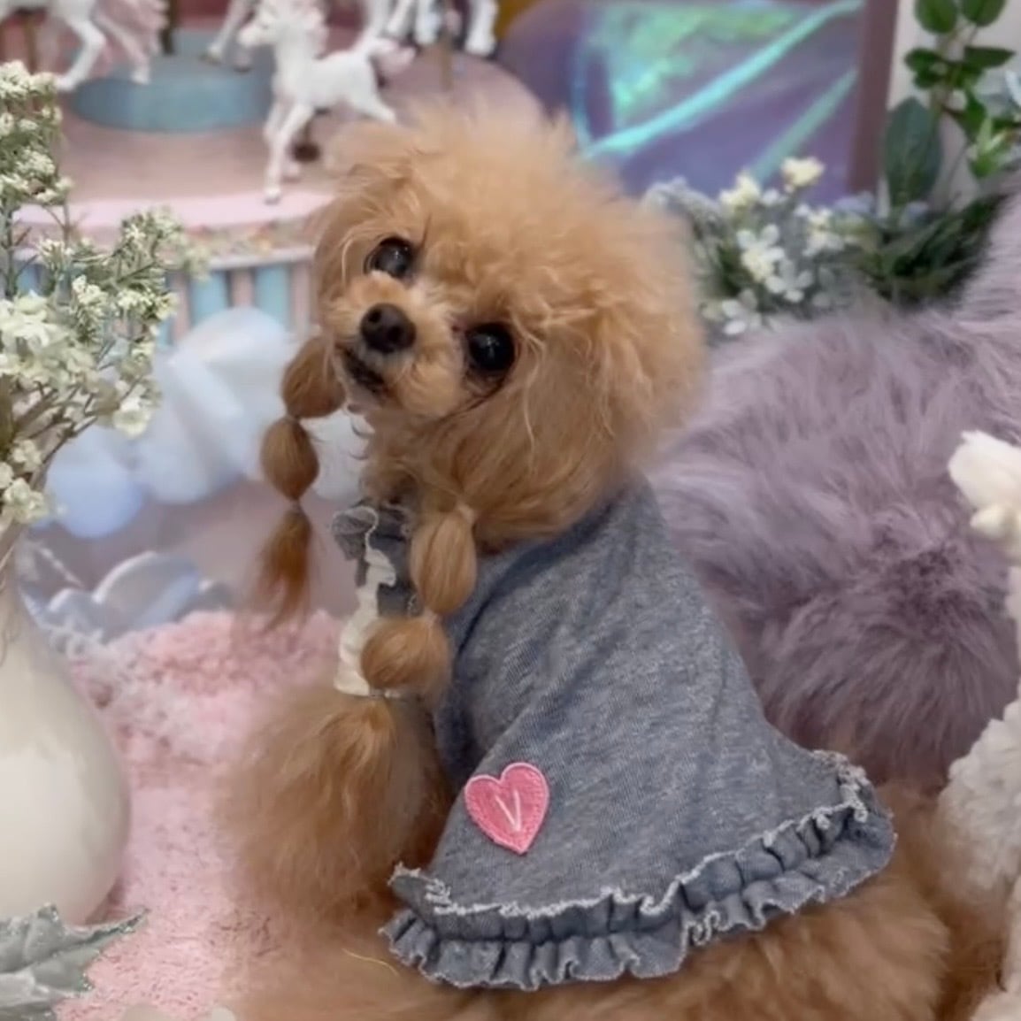バックスタイルの裾には、ブランドのアイコンでもある「V」の文字が入ったハートワッペンをオン。後ろ姿まで抜かりなくキュートに仕上げています♡