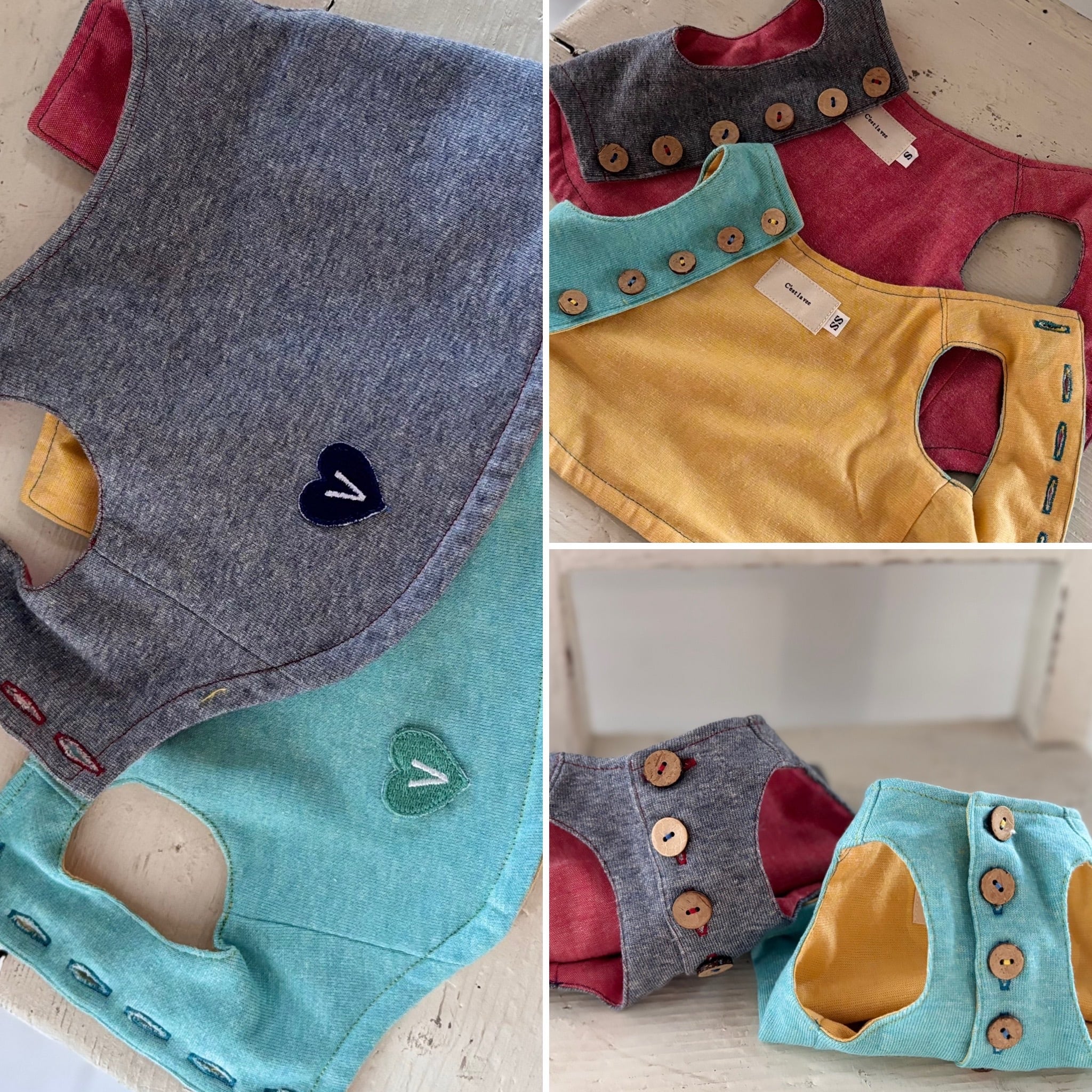 Lovee-Vee one-pieceと共通の素材感でありながら、よりスッキリとしたシルエットにこだわった一着です。前身頃のボタンが縦のラインを強調し、スタイリッシュな印象を与えます。