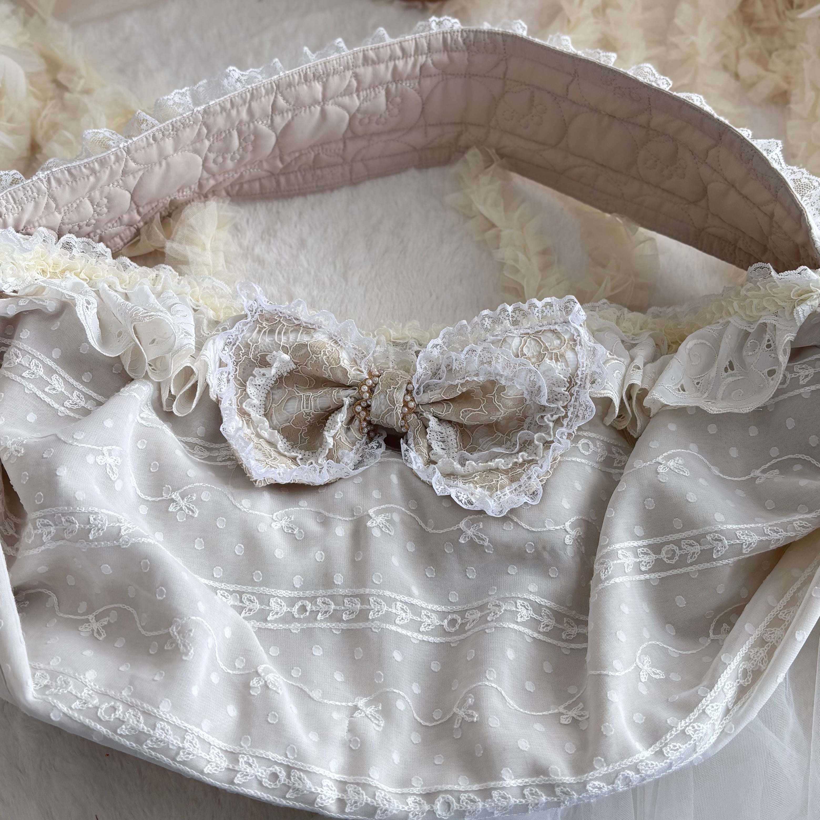 愛犬とのお出かけが待ち遠しくなる、一点もののドッグスリングです!多彩なおしゃれなレースがあしらわれており、どんなシーンでも活躍します。底板には柔らかなマットを取り入れているため、愛犬がくつろげる仕様に仕上げました。 ■飛び出し防止ネット付き 安心してお出かけできるように、飛び出し防止ネットが付いています。お散歩時や移動中も、愛犬をしっかり守ります。 ■便利なポケット付き 肩紐の片側にはポケットがあり、小物やおやつを収納するのに便利です。おしゃれな見た目だけでなく、機能性にもこだわりました。 様々なシーンで愛犬と一緒にお出かけを楽しむことができるスリングです。